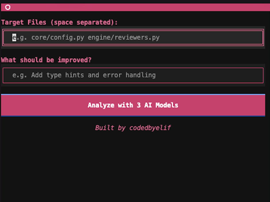 Kodunu değerlendiren ve geliştiren, iki farklı modeli aynı anda kullanıp sonuçları terminalde yan yana gösteren TUI tabanlı bir uygulama.